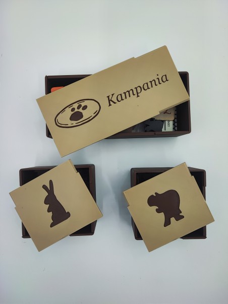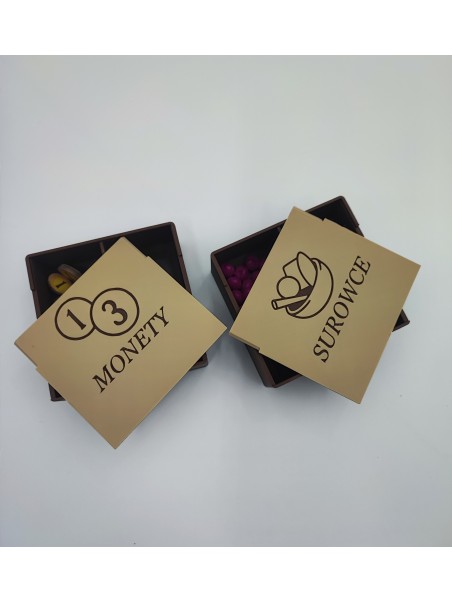 Insert wykonany w technologii druku 3d, co zapewnia niewielką wagę oraz brak konieczności samodzielnego sklejania - wszystkie pojemniki są gotowe do umieszczenia w pudełku.