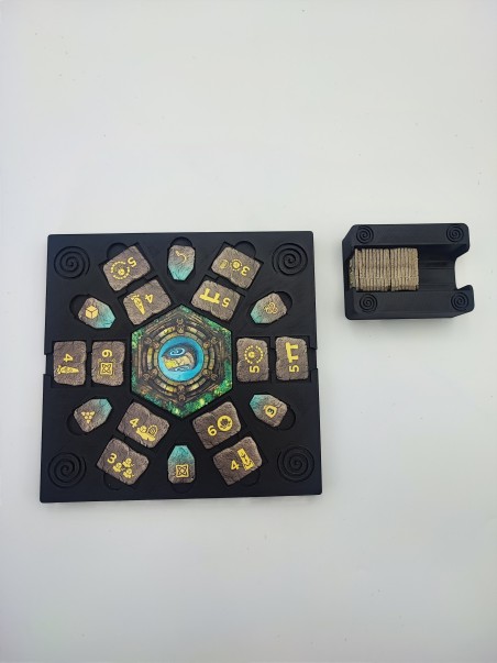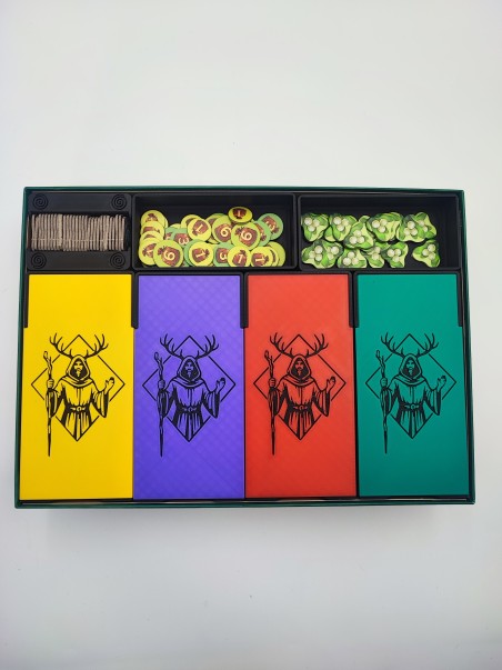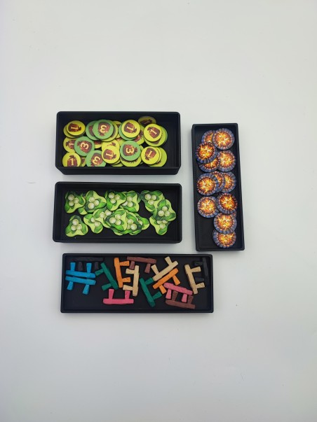 Insert wykonany w technologii druku 3d, co zapewnia niewielką wagę oraz brak konieczności samodzielnego sklejania - wszystkie pojemniki są gotowe do umieszczenia w pudełku