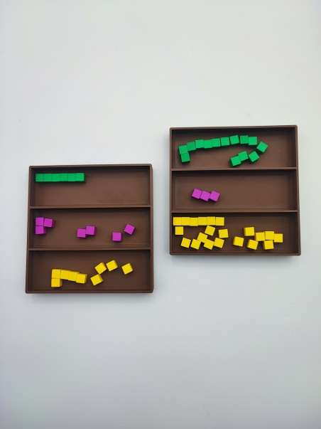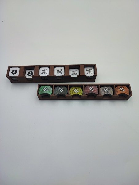 Pojemniki na zasoby w dwóch kopiach - po jednej na każdą część stołu. Przewidują też miejsce na większą liczbę kosteczek.