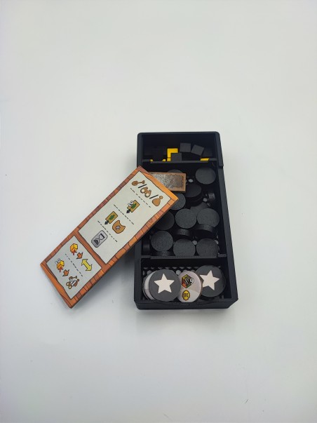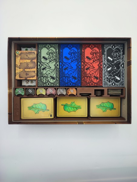 Insert wykonany w technologii druku 3d, co zapewnia niewielką wagę oraz brak konieczności samodzielnego sklejania - wszystkie pojemniki są gotowe do umieszczenia w pudełku