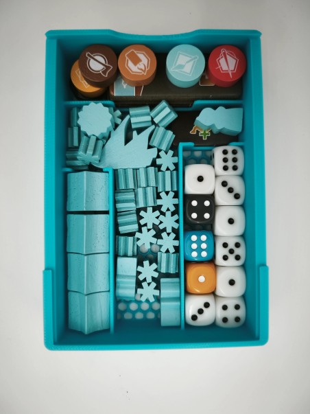 Insert wykonany w technologii druku 3d, co zapewnia niewielką wagę oraz brak konieczności samodzielnego sklejania - wszystkie pojemniki są gotowe do umieszczenia w pudełku