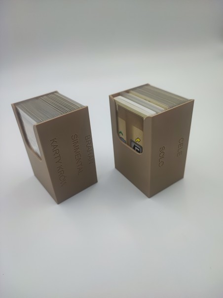 Pojemniki na karty mieści wszystkie karty z gry podstawowej oraz dodatku w koszulkach premium.