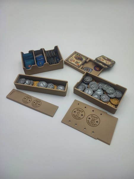 Dzięki dwóm oddzielnym pojemnikom na monety, każdy z graczy będzie miał je w zasięgu ręki.