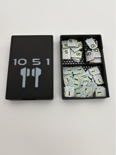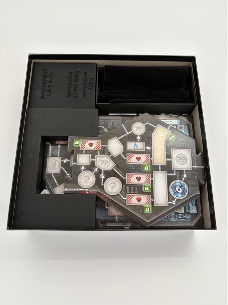Insert wykonany w technologii druku 3d, co zapewnia niewielką wagę oraz brak konieczności samodzielnego sklejania - wszystkie pojemniki są gotowe do umieszczenia w pudełku.