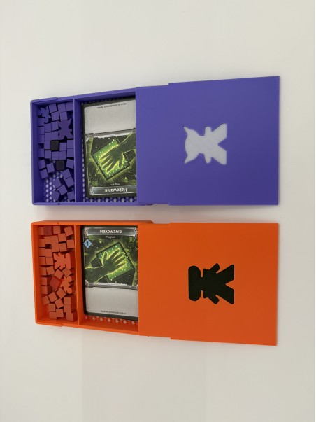 Elementy gracza spakowane są w dedykowane pojemniki z przykrywką w dopasowanym kolorze.