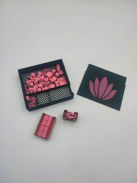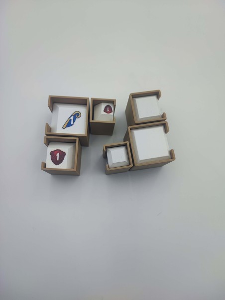 Insert wykonany w technologii druku 3d, co zapewnia niewielką wagę oraz brak konieczności samodzielnego sklejania - wszystkie pojemniki są gotowe do umieszczenia w pudełku.