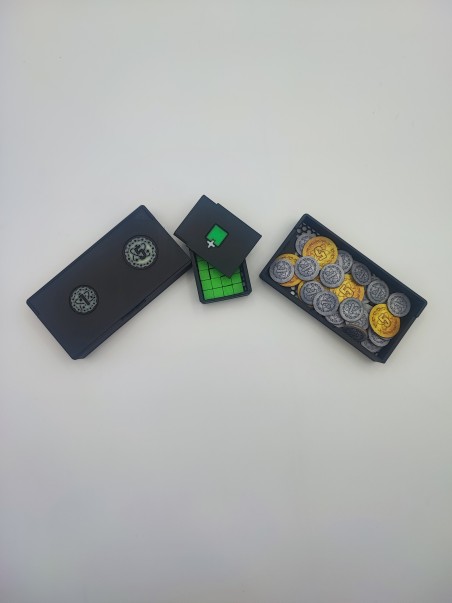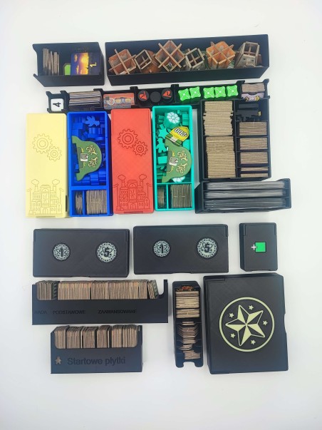 Insert wykonany w technologii druku 3d, co zapewnia niewielką wagę oraz brak konieczności samodzielnego sklejania - wszystkie pojemniki są gotowe do umieszczenia w pudełku.