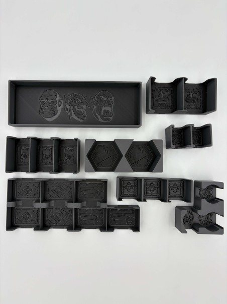 Insert wykonany w technologii druku 3d, co zapewnia niewielką wagę oraz brak konieczności samodzielnego sklejania - wszystkie pojemniki są gotowe do umieszczenia w pudełku
