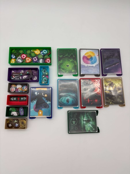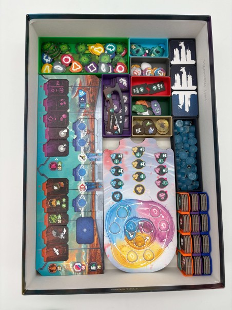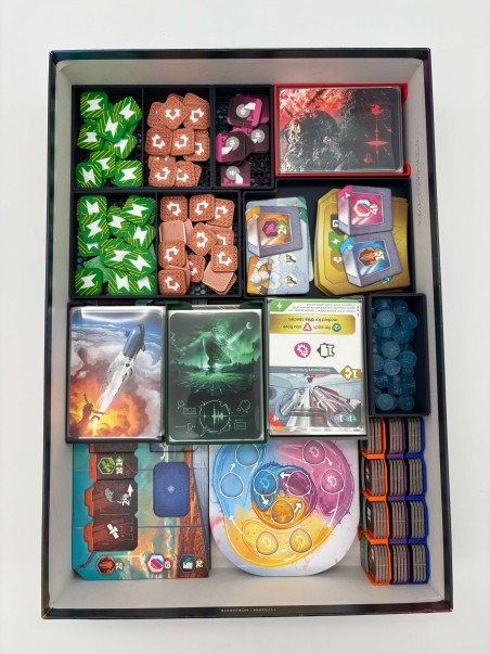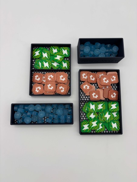 Insert wykonany w technologii druku 3d, co zapewnia niewielką wagę oraz brak konieczności samodzielnego sklejania - wszystkie pojemniki są gotowe do umieszczenia w pudełku