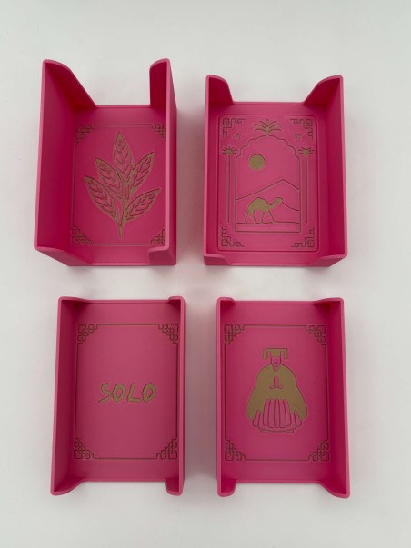 Stojaki na karty nie tylko przechowają je w pudełku, ale też będą służyć za podajniki w czasie gry! Mieszczą karty w koszulkach premium.