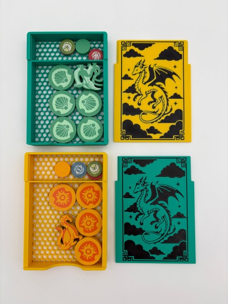 Insert wykonany w technologii druku 3d, co zapewnia niewielką wagę oraz brak konieczności samodzielnego sklejania - wszystkie pojemniki są gotowe do umieszczenia w pudełku