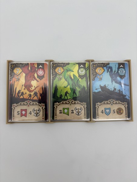 Dedykowane stojaki mieszczą wszystkie karty w koszulkach premium i mają wygrawerowane grafiki smoków!